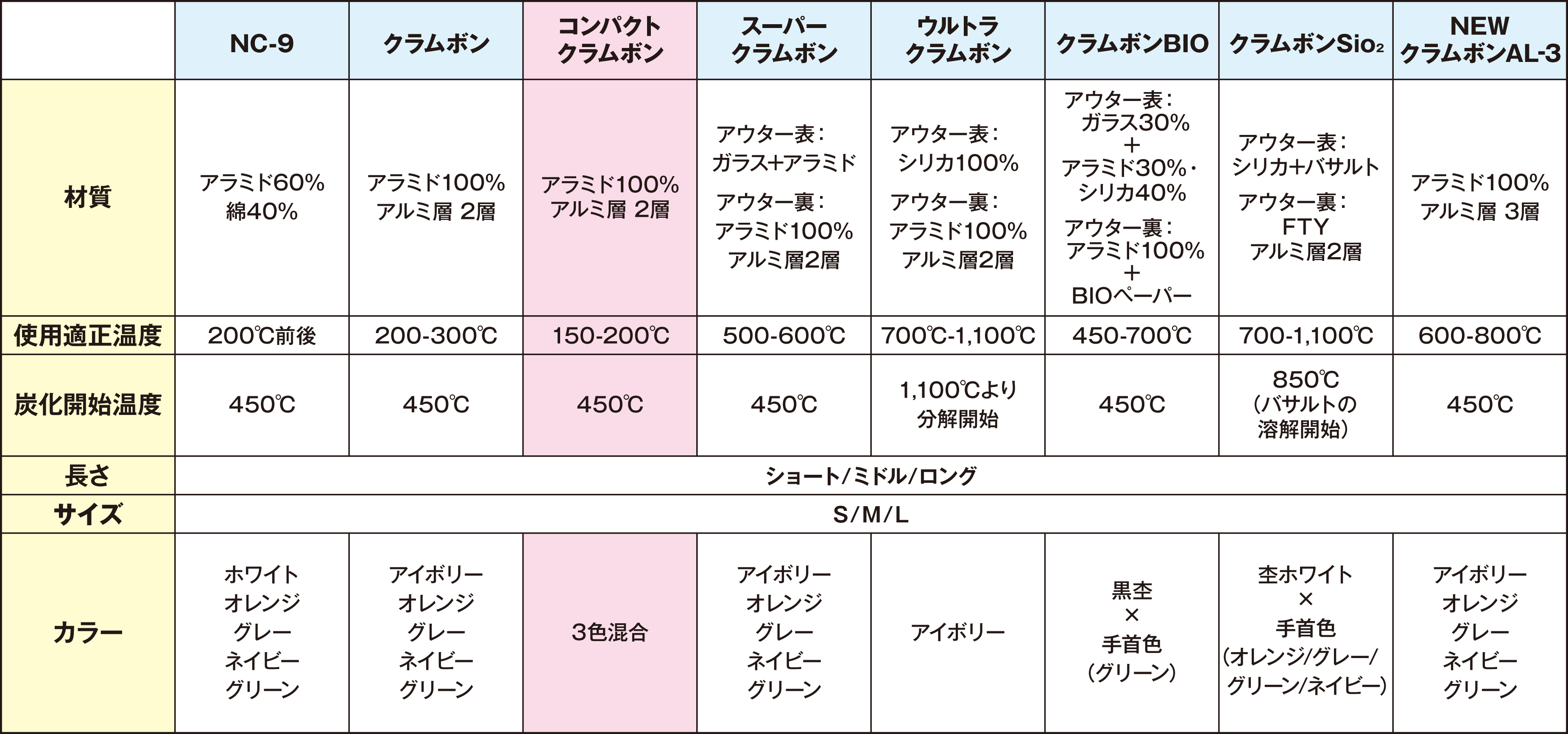 比較表 コンパクト・クラムボン